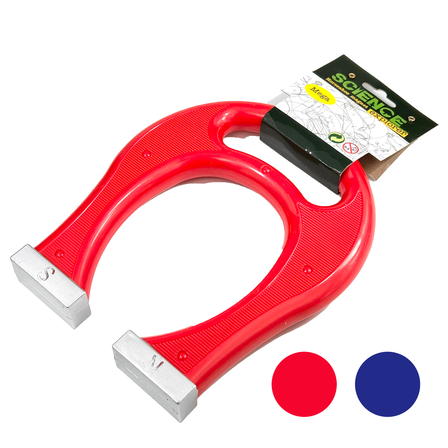 ผลิตจากพลาสติกเป็นรูปเกือกม้า มีแม่เหล็กแรงสูงอยู่ด้านใน ใช้ถือแท่งแม่เหล็กรูปทรงเกือกม้า ขนาดจับพอดีมือเด็ก ปลายทั้ง 2 ด้าน มีแม่เหล็กขั้ว+ และขั้ว- มีตัวเลือกด้วยกัน 3 สี ได้แก่ สีน้ำเงิน , สีแดง : 17x2.5x21 ซม.