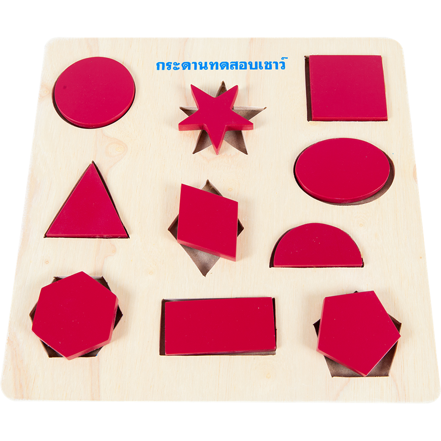 ผลิตจากไม้อัดยางพาราความหนา 9 มม. ตัดเป็นรูปกระดานทรงสี่เหลี่ยมขนาด 30x30 ซม. ฉลุเป็นรูปทรงเรขาคณิตจำนวน 10 ทรง